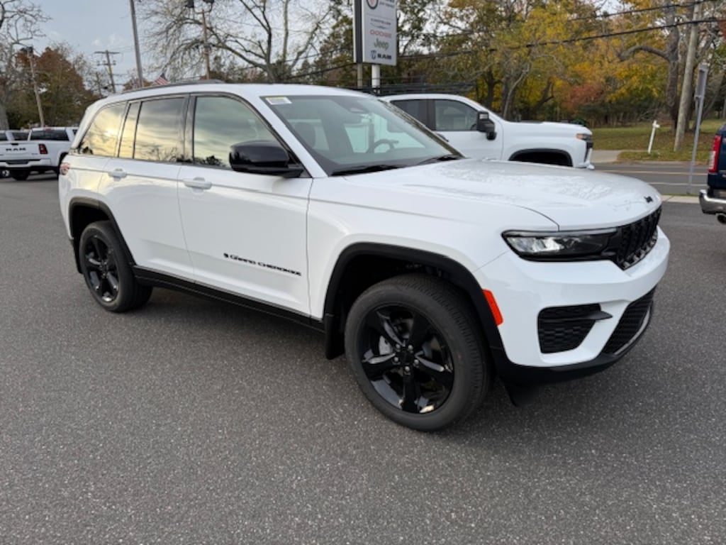 View this new 2025 Jeep Grand Cherokee Sport Utility ALTITUDE X 4X4 for sale at Mullen Motors, serving the Southold, Mattituck, Greenport, and Cutchogue area with new Jeep Grand Cherokee sales.